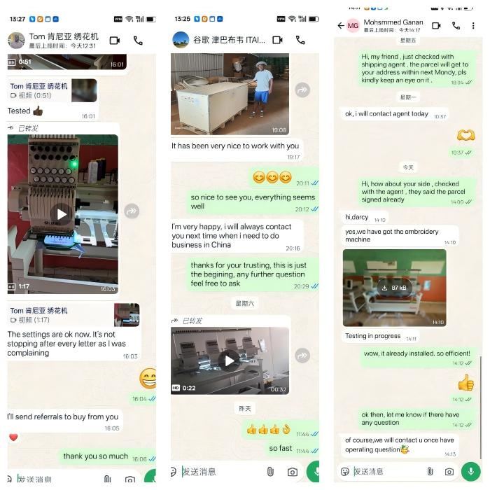 We have customers from all over the world who are using our embroidery machines. Regarding the delivery of embroidery machines, we provide door-to-door service. Our packaging is strong and durable, the interior is fixed, and all accessories are individually packaged and arrive intact.