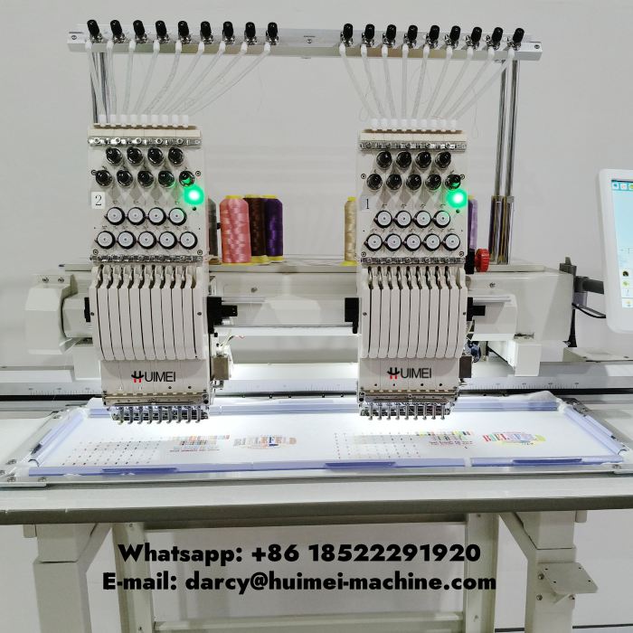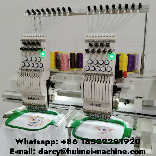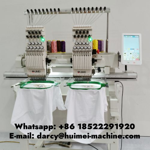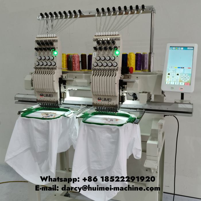 машинка для вышивки принтов на одежде Компьютерная вышивальная машина Huimei с 2 головками, минимальный заказ - только один ПК, гарантийный срок 1 год, можно на одной машине наносить вышивку на футболки, кепки, плоскую вышивку.