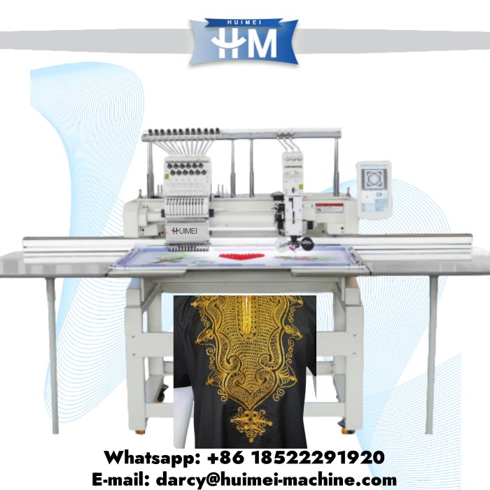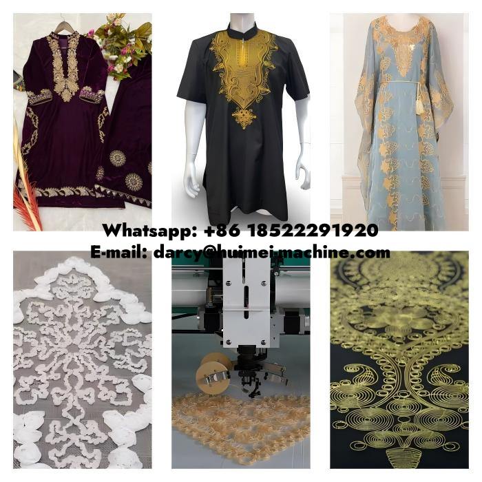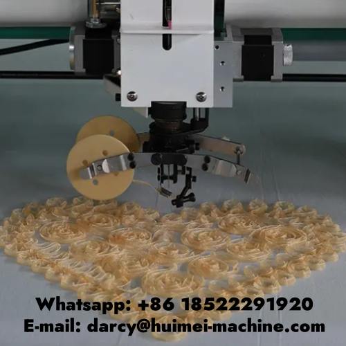Huimei industrial use high speed multi needle 1+1 cording and robbin embroidery machine ,with extra device , can make designs on different products