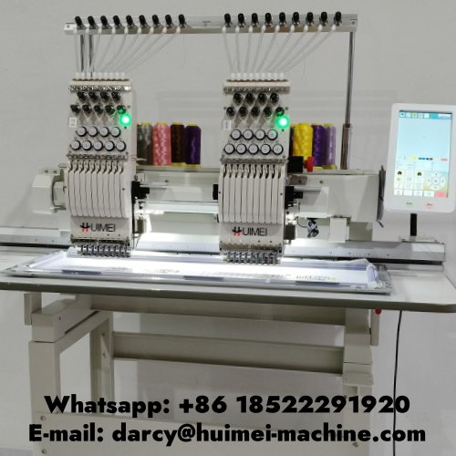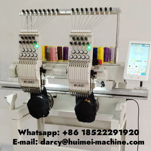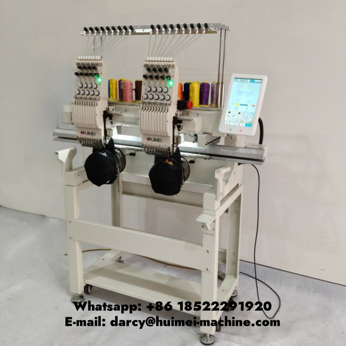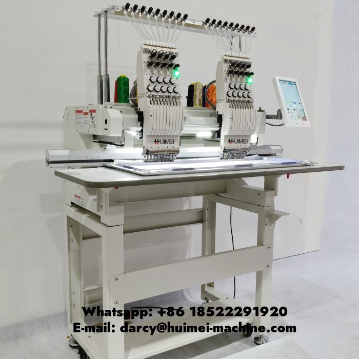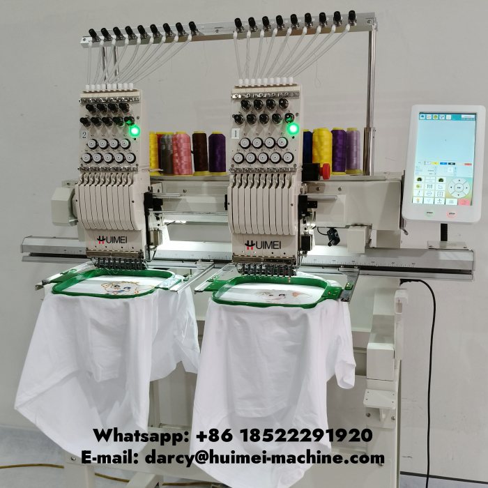 Двухголовочная вышивальная машина Huimei может наносить логотипы разных размеров на футболки или готовую одежду, мы поставляем клиентам полный комплект рам.