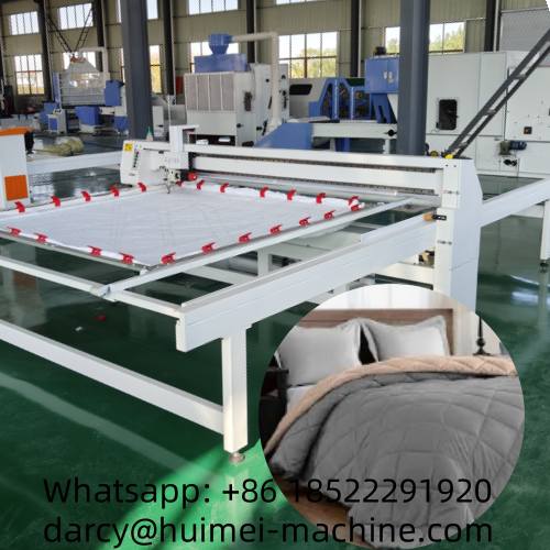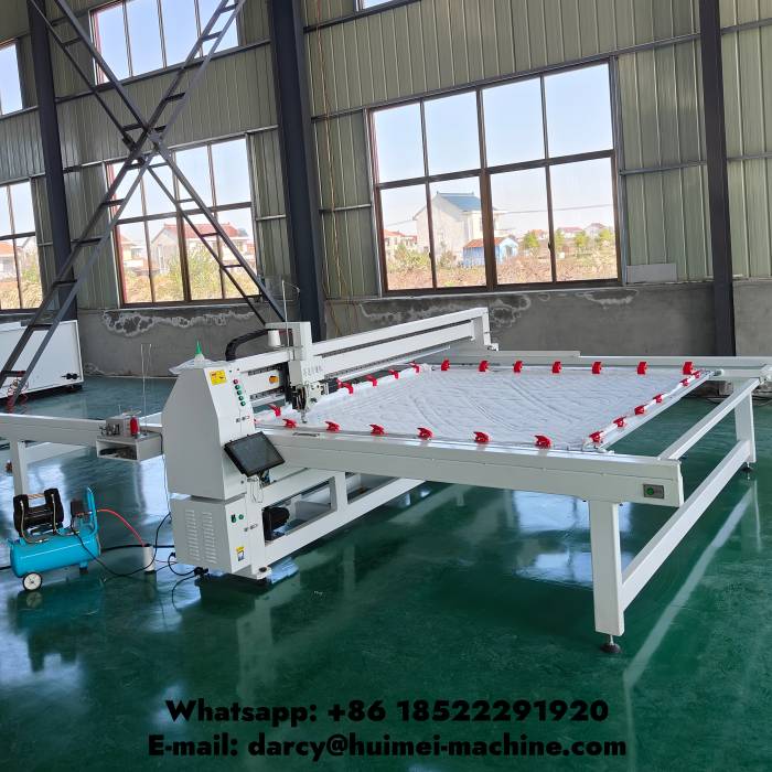 Huimei single needle quilting machine quilting prices differently, with varying product sizes and production capacities. We're showcasing our latest model, designed for quilting quilts, mattresses, bedspreads, and other bedding products. Compared to other models, we've refined the machine's structure, increasing the thickness of all materials. The machine head utilizes an optical axis track, allowing for quilting speeds of 3,000-3,500 RPM. The computer comes pre-installed with a state-of-the-art operating system. If updates become available during use, we'll remotely update the system for you. Daily production figures can be viewed on the computer's backend, and any equipment malfunctions can be tracked.