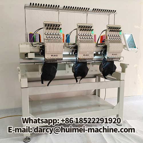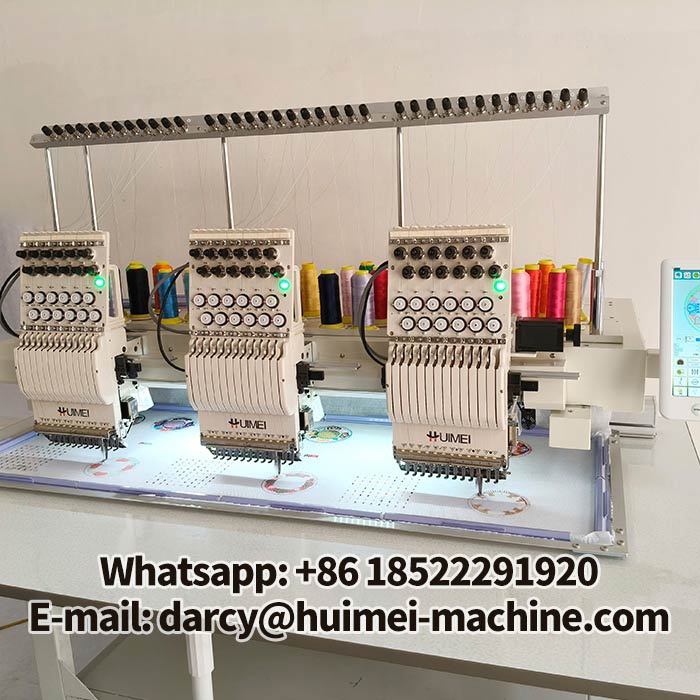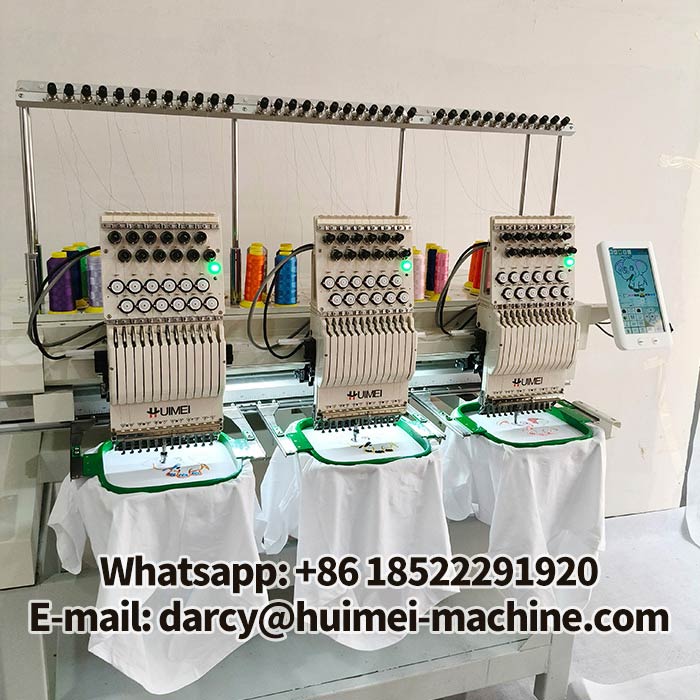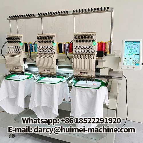 La máquina de bordar computarizada Huimei de tres cabezales tiene un área de trabajo de 400 x 400 mm por cabezal y permite alternar fácilmente entre tres modos: plano, gorra y camiseta, como se muestra en la imagen. Sus aplicaciones son muy variadas. La máquina de bordar computarizada Huimei se puede personalizar con accesorios como bordado con cuentas, lentejuelas, láser y ribetes para satisfacer sus necesidades. Además de estos accesorios, existen otros bastidores de bordado disponibles, como los de calcetines, zapatos, bolsos y bolsillos pequeños, lo que amplía considerablemente la funcionalidad de la máquina. La máquina de bordar computarizada Huimei es rápida, robusta y duradera, y está equipada con una pantalla táctil y un cortahilos automático. También cuenta con una interfaz USB para importar patrones y fuentes, además de otras funciones estándar.