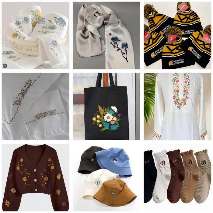A nossa máquina de bordar de cabeça dupla pode produzir diferentes produtos. As imagens seguintes são para sua referência. Existem mais funções a aguardar a sua descoberta, utilização e feedback.