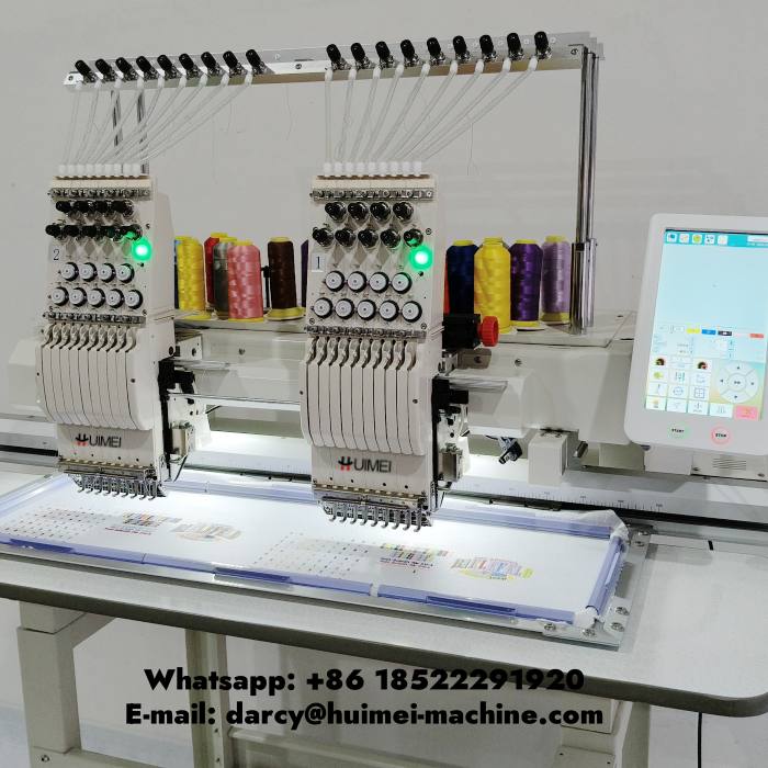 A máquina de bordar de cabeça dupla Huimei é uma máquina três em um que desempenha três funções na mesma máquina. Pode ser organizada em bordado plano, bordado para vestuário e bordado para boné. É fácil e simples de operar e pode ser alternada livremente. A imagem acima mostra a função de bordado plano do bordado.