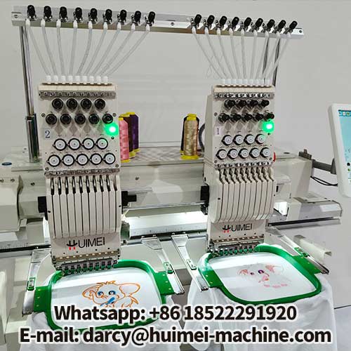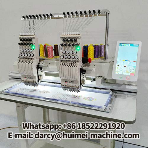 La máquina de bordar computarizada Huimei es rápida, robusta y duradera. Está equipada con una pantalla táctil y cortador de hilo automático. También cuenta con una interfaz USB para transferir patrones de diseño y fuentes, así como otras funciones estándar.
